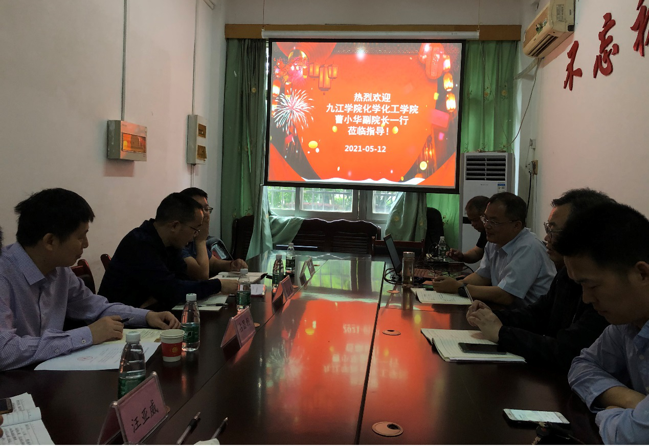 2021年5月12日上午,九江学院化学化工学院副院长曹小华、材化教研室主任占昌朝、化学及化工教研室副主任汪亚威和向程一行四人就国家一流专业申报与建设、教学管理和学生创新创业等工作前来考察交流。应化所副所长陈文通等人参加交流会。