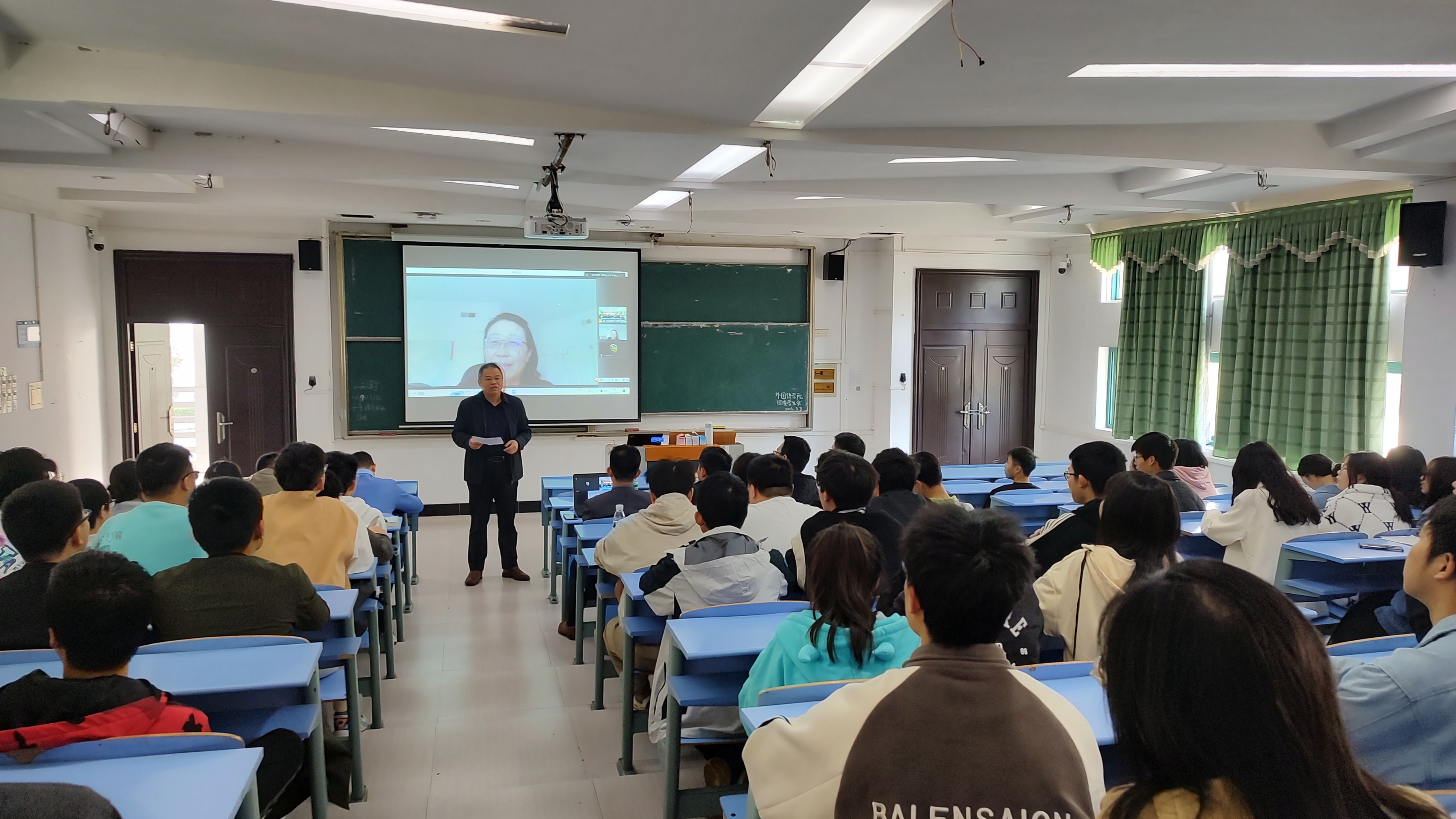 冯教授采用中、英文双语讲授,深入浅出的介绍了多孔材料化学的前沿动态,详细介绍了自己团队在“晶态多孔材料”方面的研究成果以及应用前景。冯教授广博的学识和质朴的作风,使在场师生受益颇多。